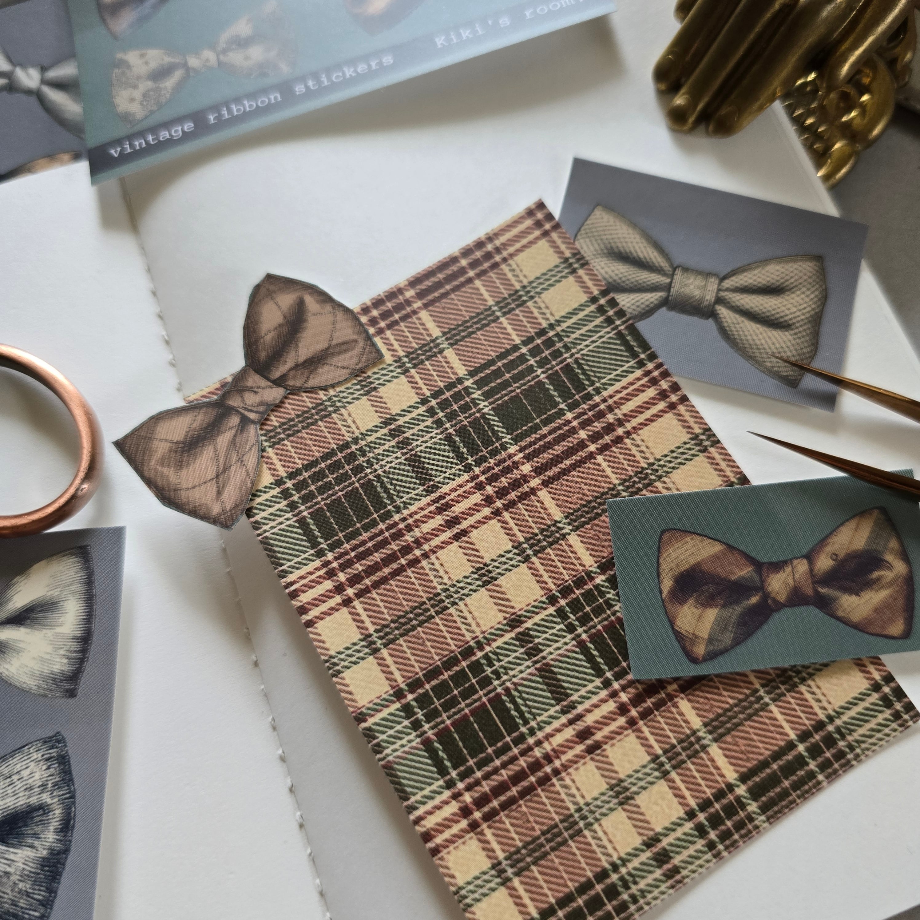 手帳デコやコラージュにぴったりなリボンモチーフのステッカー。