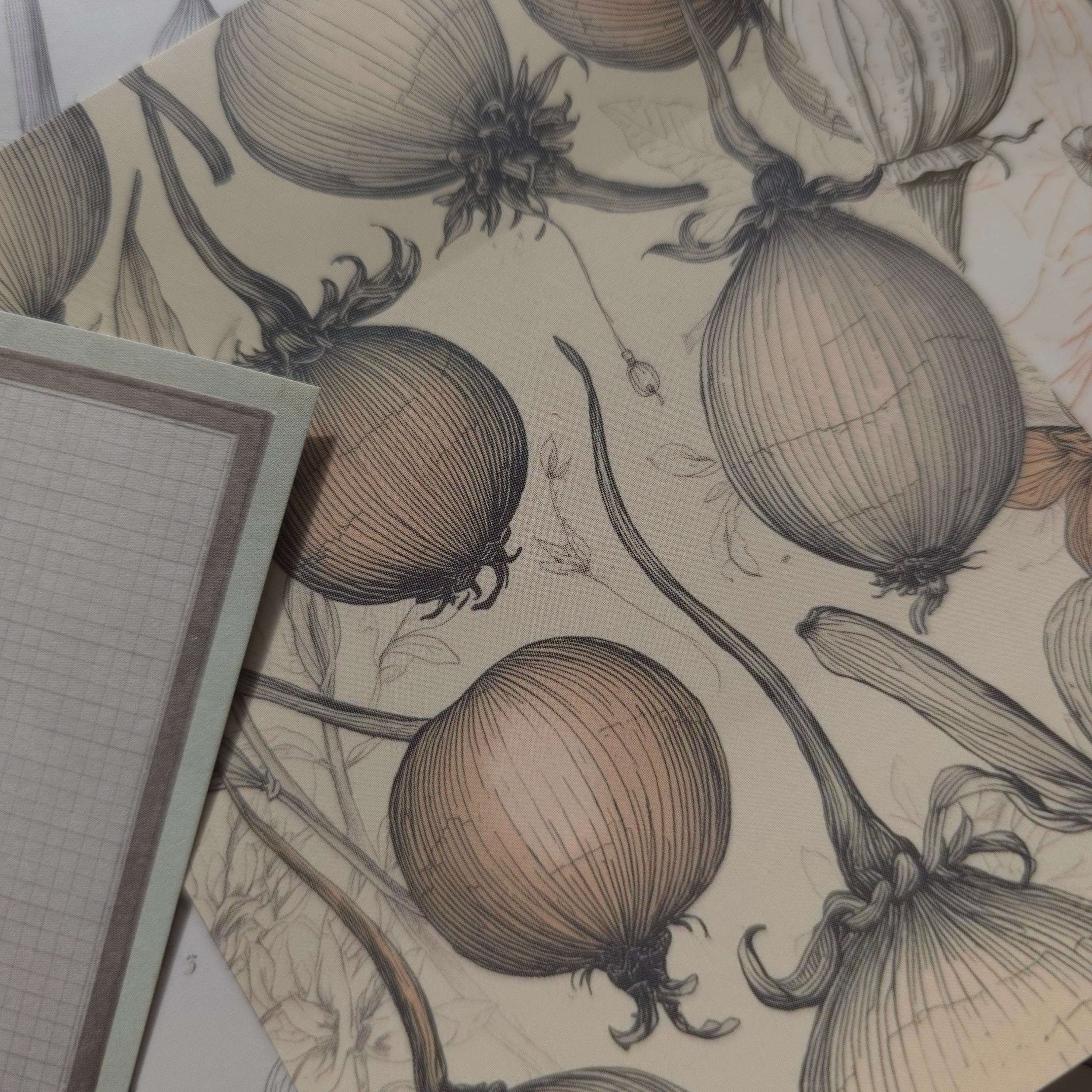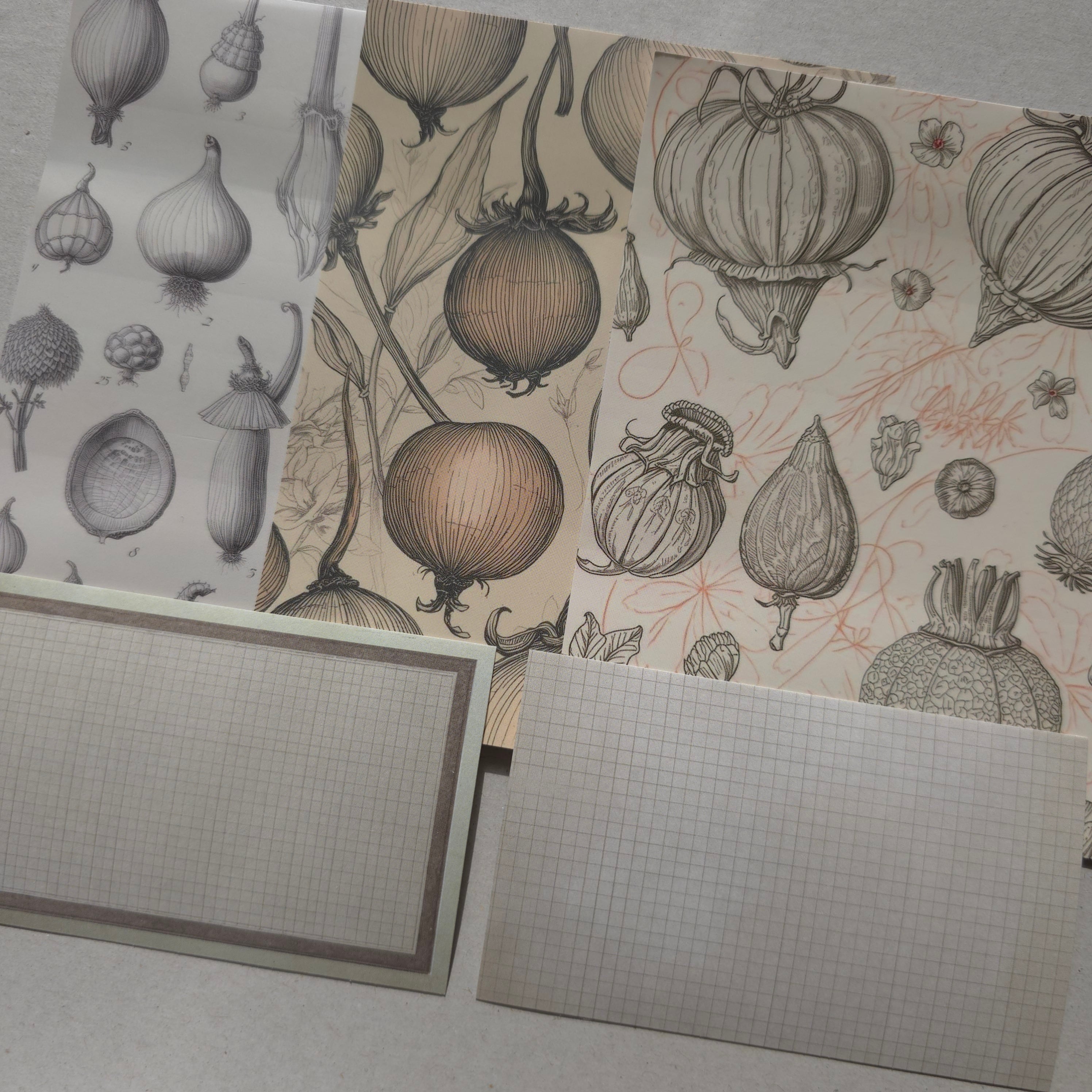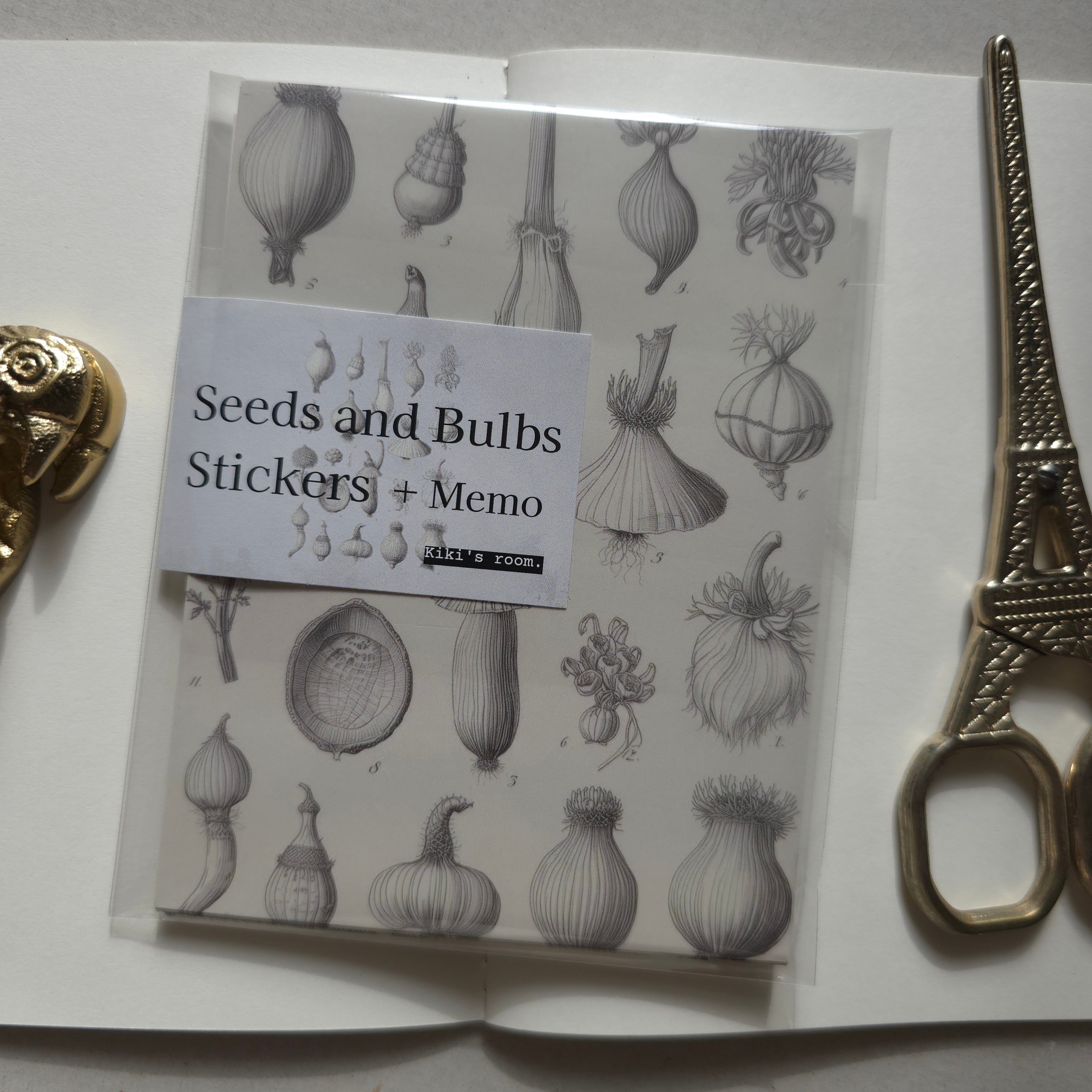メモステッカーと、様々な種と球根をモチーフにしたステッカー。